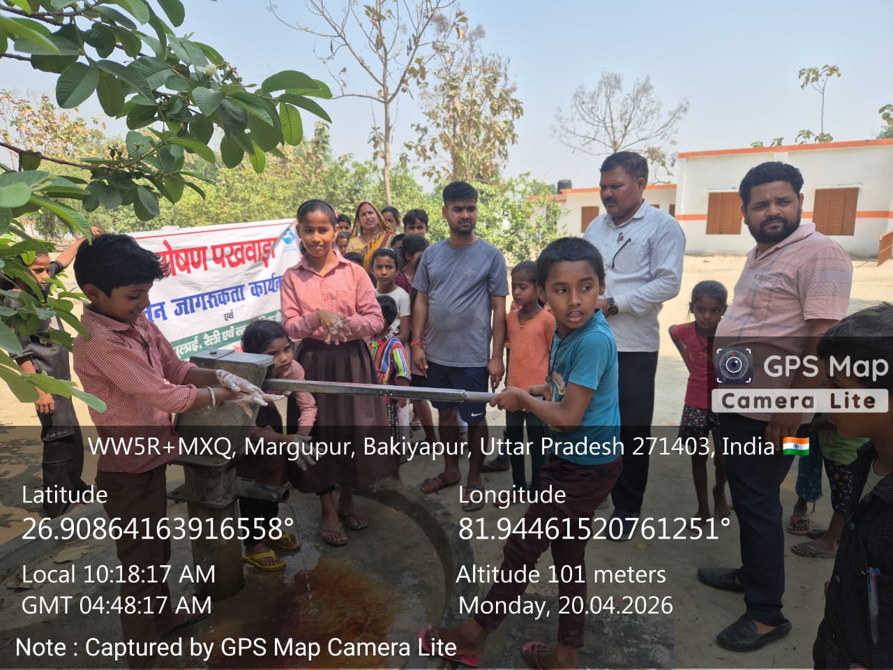 आज दिनांक 20/04/2026को पोषण पखवाड़ा के अंतर्गत ग्राम. पंचायत = मरगुब पुर विकास खण्ड =बेलसर मे प्राथमिक विद्यालय मे हैंड वास एवं रैली का कार्क्रम किया गया.