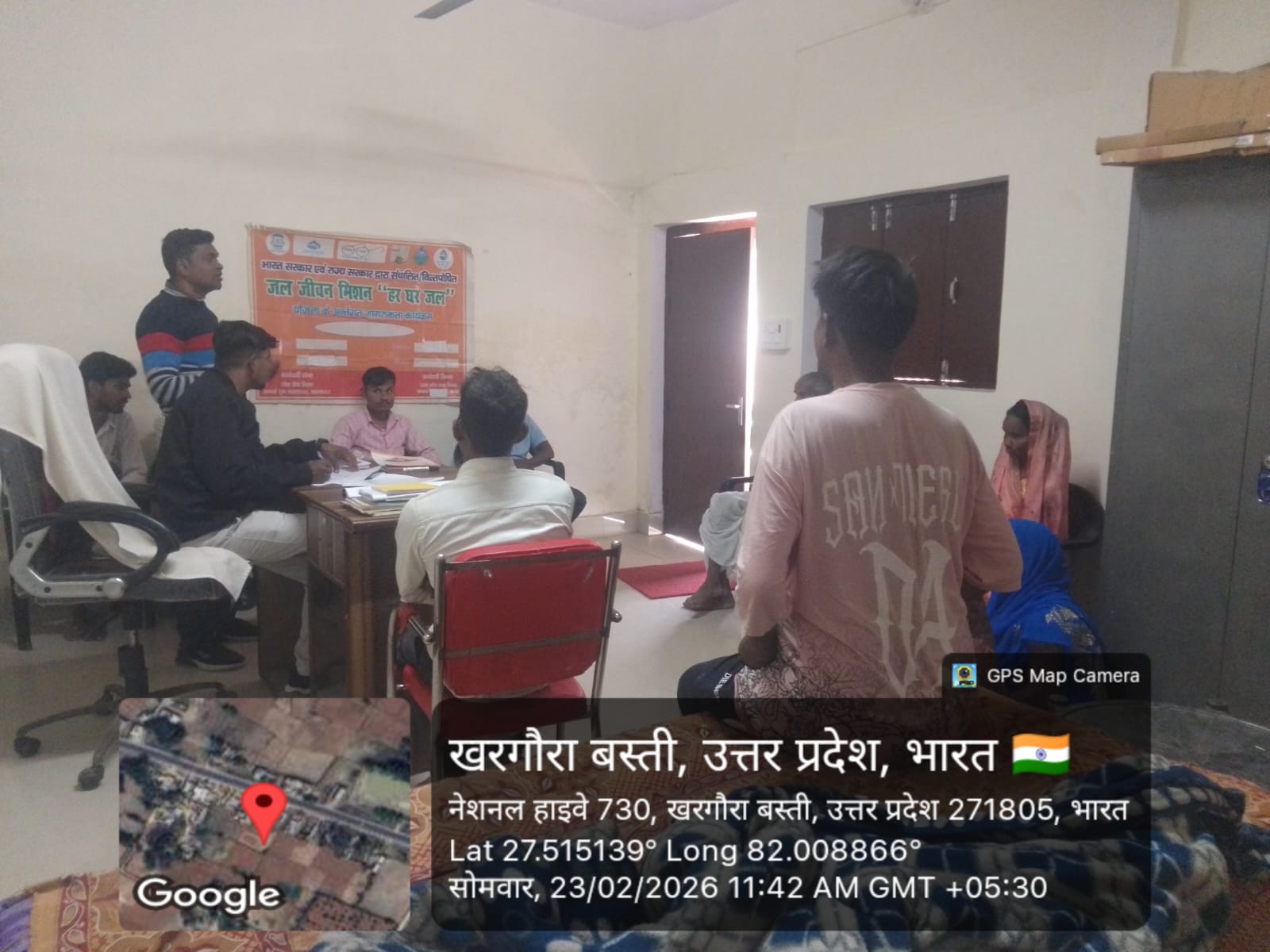दिनांक 23 फरवरी 2026 दिन सोमवार ग्राम पंचायत खरगौरा बस्ती विकासखंड इकौना जनपद श्रावस्ती में जल जीवन मिशन के तहत जल आकलन किया गया जिसमें vwsc मेम्बर उपस्थित थे Category - वी.डब्ल्यू.एस.सी/जी.पी.डब्ल्यू.एस.सी, उ.प्र.ज.नि. और डी.डब्ल्यू.एस.एम. के साथ चर्चाPhase - PHASE-3