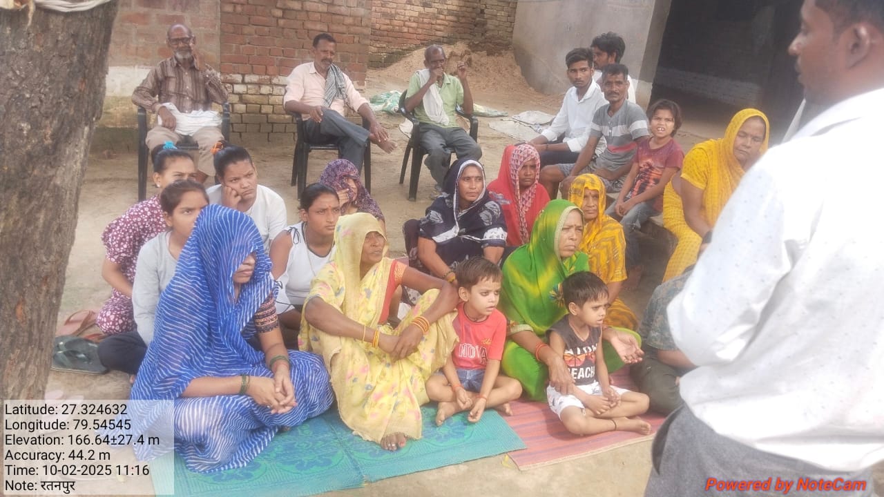 आज दिनाक 25/2/2023 को सर्वार्थ सेवा संस्थान लखनऊ द्वारा शमसाबाद ग्राम पंचायत बुढ़नपुर में ग्राम प्रधान प्रेम सिंह जी की अध्यक्षता मे महिला ओर पुरुष बैठक का आयोजन किया गया,जिसमे महिलाओं और पुरुषों ने उपस्थित होकर योजना को सफल बनाने का संकल्प लिया।