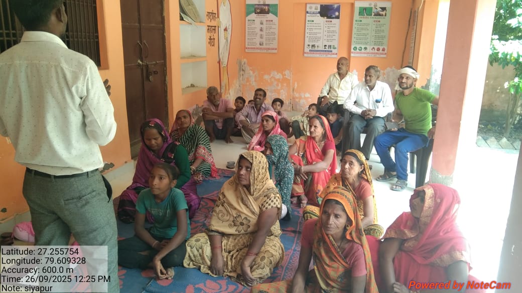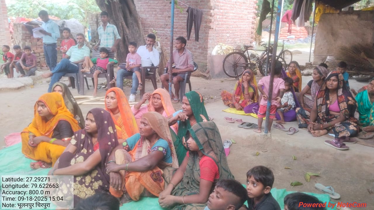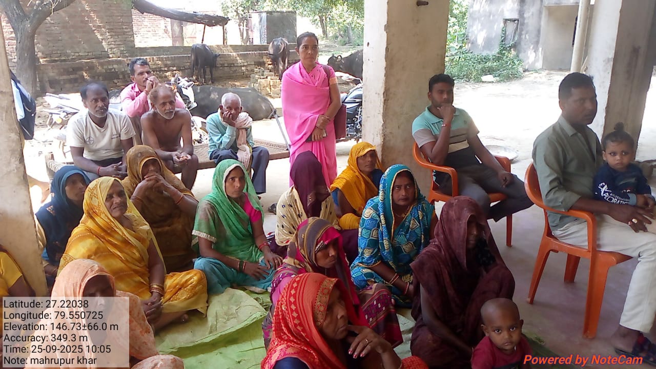 आज दिनाक 25/4/2023 को सर्वार्थ सेवा संस्थान लखनऊ द्वारा शमसाबाद ग्राम पंचायत बुडनपुर में ग्राम प्रधान प्रेम सिंह जी की अध्यक्षता मे महिला ओर पुरुष बैठक का आयोजन किया गया,जिसमे महिलाओं और पुरुषों ने उपस्थित होकर योजना को सफल बनाने का संकल्प लिया।
